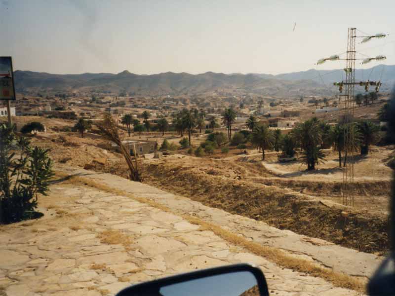 Wir haben beschlossen, gegen 11.00 aufzubrechen und die Mittagssonne im Schatten der Oase von Chenini vorbeiziehen zu lassen. Schliesslich wollen wir heute nur 120 km nach Ksar Ghilane, einer Oase in der Sahara unter die Räder nehmen. Zu diesem Zeitpunkt glauben wir noch, dass diese 120 km eine Frage von zwei bis drei Stunden sein werden. Als erstes müssen wir in Matmata, der letzten Stadt vor der Wüste, feststellen, dass die in der Karte eingezeichnete Tankstelle rein fiktiv ist. Also zurück nach Matmata Nouvelle, um zwei Kanister Benzin zu besorgen..
