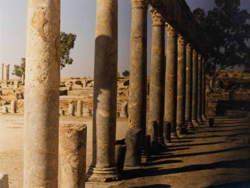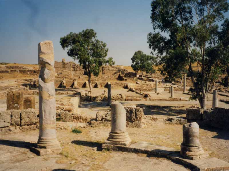 Thuburbo Maius ist nach Dougga die grösste, freigelegte Römersiedlung in Tunesien. Leider ist die Ausgrabung ziemlich ausgeschlachtet. Die meisten Mosaiken und sämtliche Statuen wurden entfernt und zum Teil im Bardo-Museum ausgestellt. Trotzdem gibt es für den interessierten Touristen genügend zu sehen, allem voran die gewaltige Zisternenanlage, die einst die ganze Stadt mit Wasser versorgt haben soll. Die zahlreichen Touristen, die während unseres Besuchs durch die Anlage getrieben werden, bekommen davon allerdings nicht allzuviel mit: Raus aus dem klimatisierten Bus, Kapitol, Forum, Videokamera, Merkurtempel, Sommertherme, Filmwechsel, Wintertherme, Amphitheater hamma in Rom schon gesehen, Trinkgeld, zurück in den Bus, 15 Minuten, neuer Rekord. Die folgenden Kilometer nach Tunis führen uns entlang eines imposanten Aequadukts. Dieser wurde einst vom römischen Kaiser Hadrian errichtet, um Carthago mit Süsswasser zu versorgen. Bei den immer wiederkehrenden Kriegen wurde er wiederholt beschädigt und anschliessend wieder repariert. Die letzte Auseinandersetzung um Tunesien - der zweite Weltkrieg - bedeutete dann auch das definitive Ende für die fast 90km lange Wasserleitung.