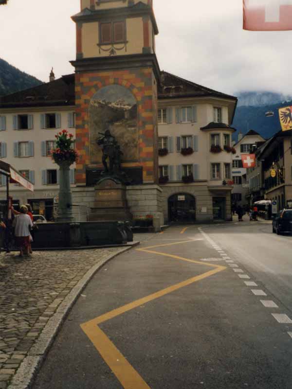 Jenseits des Gotthards empfängt uns eine bittere Kälte.Wir machen erstmal Pause, um die dicksten Kleider anzuziehen, die wir dabeihaben. An einer kleinen Tankstelle kurz nach Amsteg begrüsst uns eine offensichtlich kälteunempfindliche Tankwärtin in T-Shirt und kurzer Hose. Sie scheint allerdings über unsere Winterausrüstung ebenso erstaunt zu sein, wie wir über ihren Hawailook. Ein paar Mädchen in leichten Sommerröcken vor dem Telldenkmal in Altdorf räumen dann die letzten Zweifel beiseite, dass wir uns erst wieder an die Schweiz gewöhnen müssen.